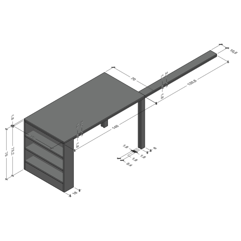 • 140x70 Özel İmalat Parlak Beyaz & Dokulu Mat Safir Meşe MDF Lam Masa ve Raf üzerinde kendine ait üst tablası ile direkt kullanıma uygundur.