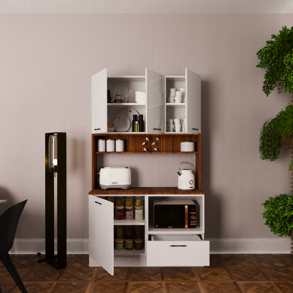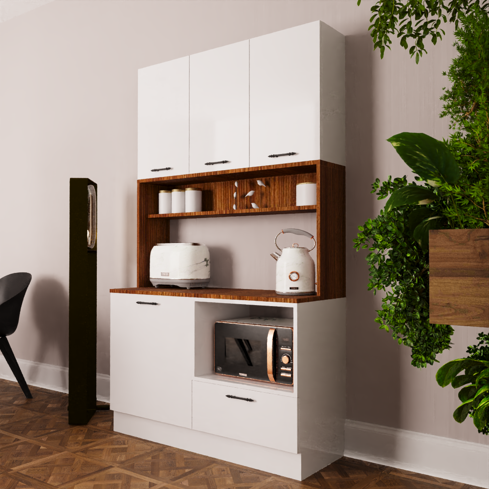 Argos Baker 120 cm Parlak Beyaz & Mat Ceviz MDF Lam Kahve ve Mikrodalga Dolabı