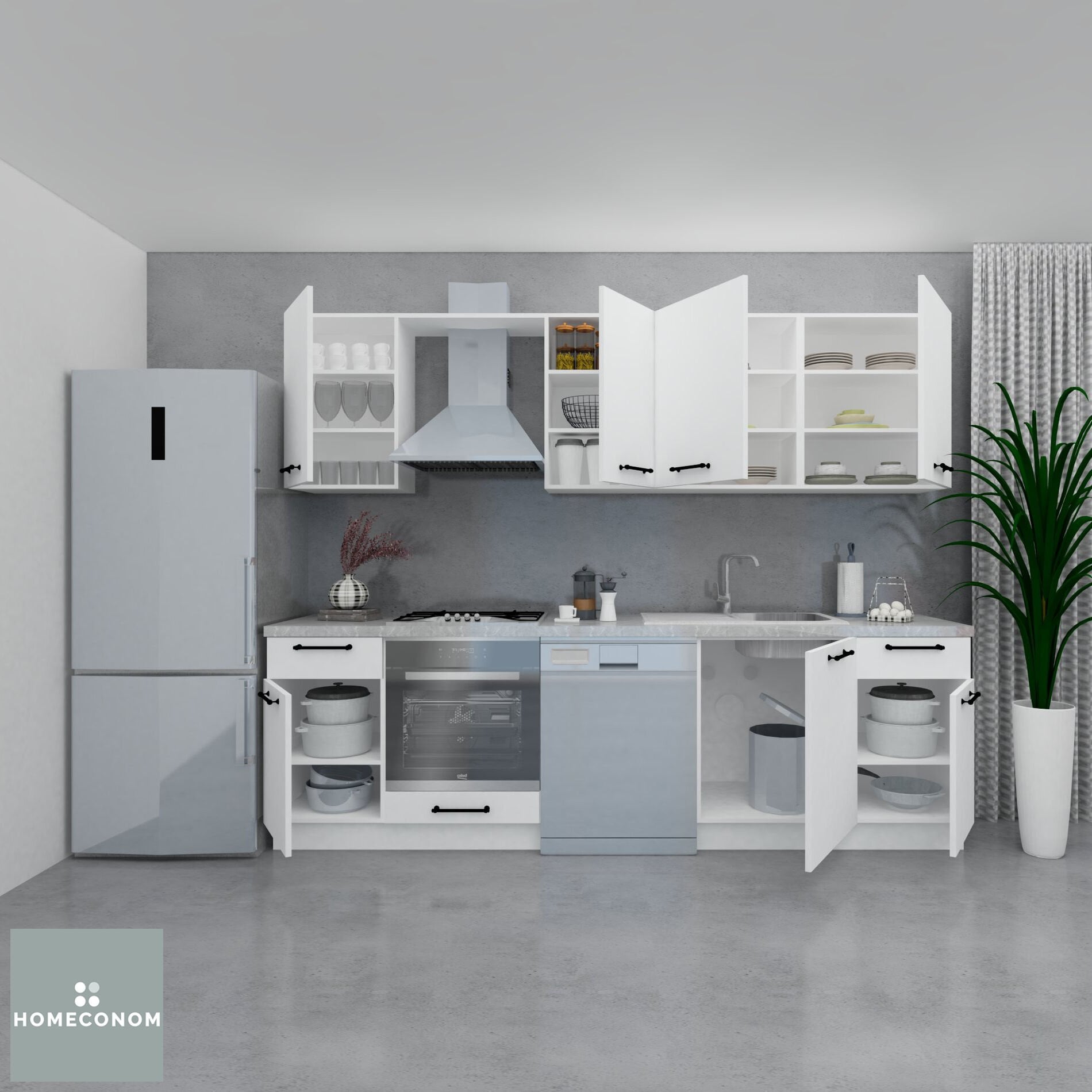 Angkor Baker 270 cm Parlak Beyaz MDF Lam Mutfak Dolabı