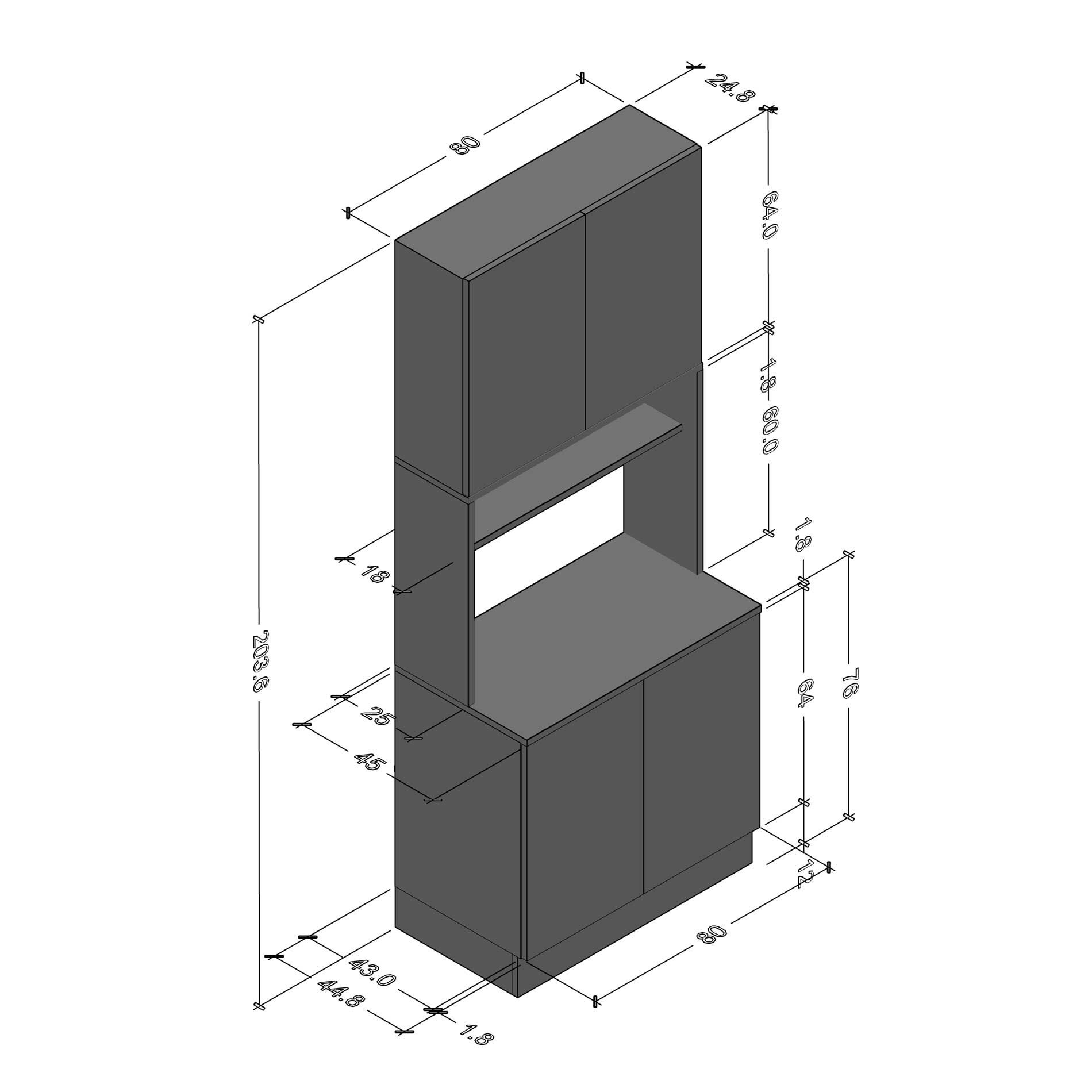 Derinlik: Alt Dolap: 44,8 cm Üst Dolap: 24,8 cm