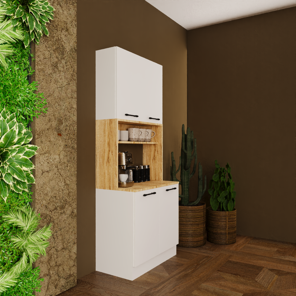 - Anitta 80 cm Mat Meşe & Mat Beyaz MDF Lam Kahve Köşesi; mutfakta, kapalı balkonda, salonda, giriş holünde, ofis alanlarında, kısaca depolama ve ekstra kullanım alanına ihtiyaç duyulan her yerde kullanıma uygun olarak tasarlanmıştır.