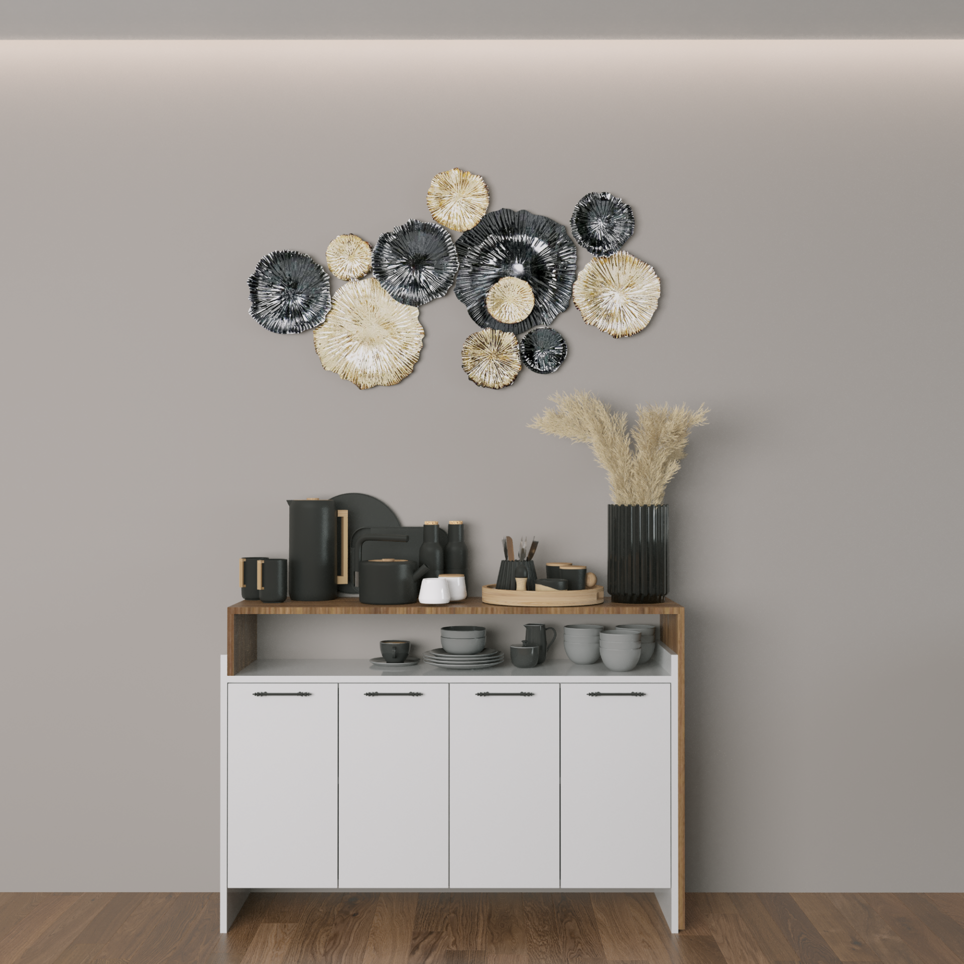 - Mat Dokulu Ceviz kısımları ile mobilya şıklığı ve sıcaklığı sağlarken, Parlak Beyaz dolap alanları ile de sadelik ve uyumu yakalar. Siyah ayakları ve kulpları, ürünün tasarım etkisini artırır.