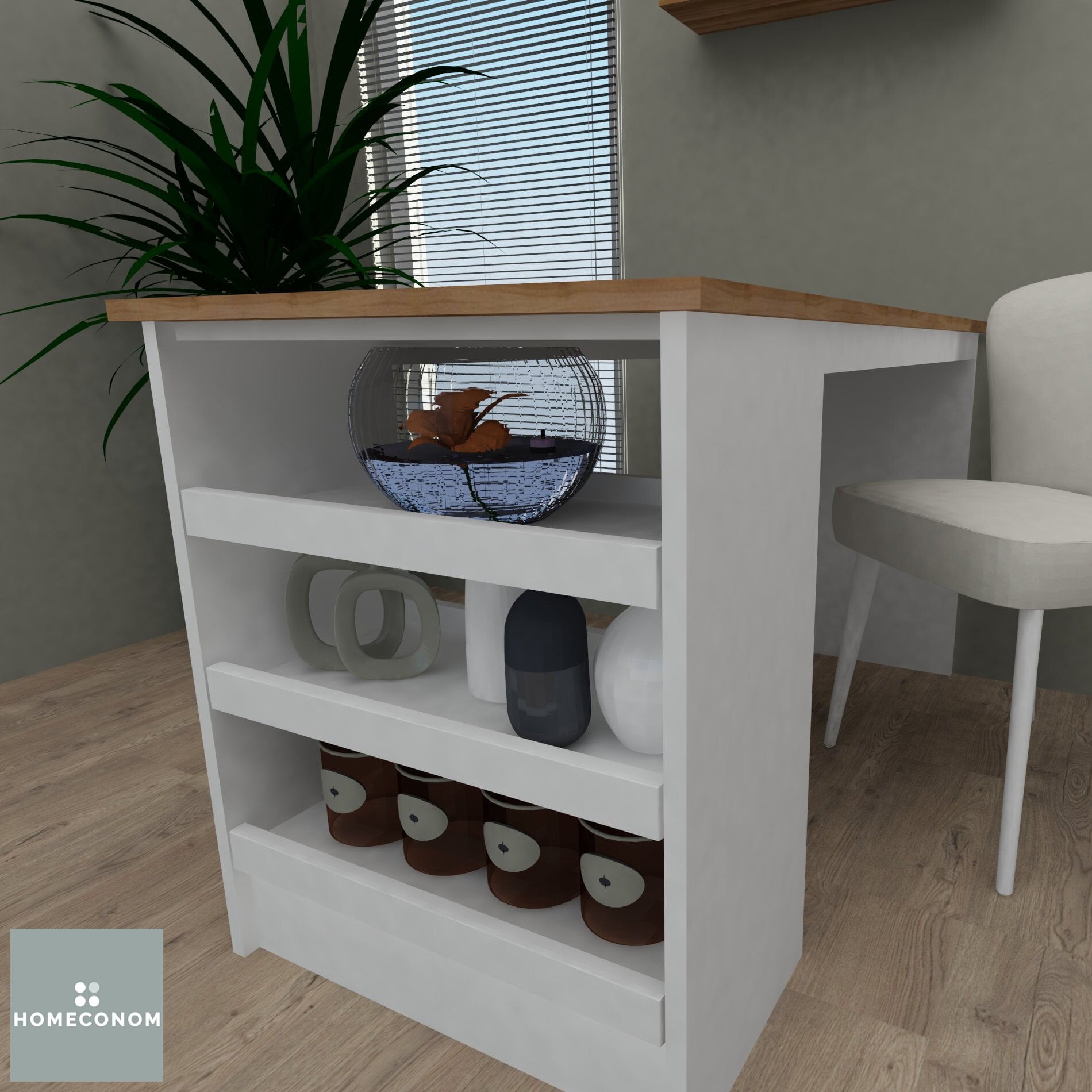 - MINIBLE 110 Parlak Beyaz & Mat Ceviz Masa, tüm HOMECONOM ürünleri ile kombin edilebilir.