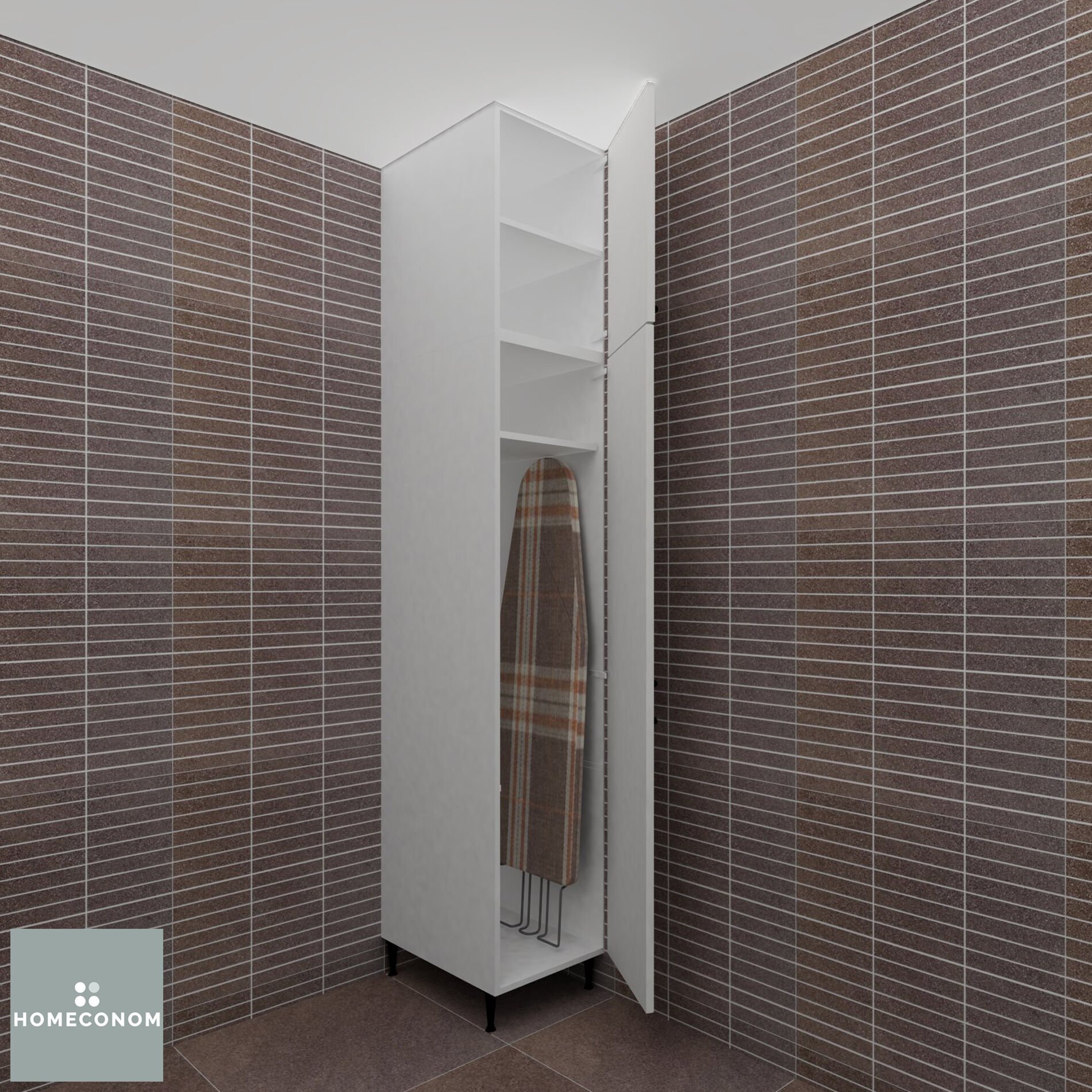 - Havlu ve Ütü Masası Ünitemizin içinde 1 adet sabit raf, 2 adet iç raf olmak üzere toplam 3 adet raf bulunmaktadır ve içine yüksek malzemeler (ütü masası, püsküllü paspas, elektrik süpürgesi vb.) koyulmaya uygundur.