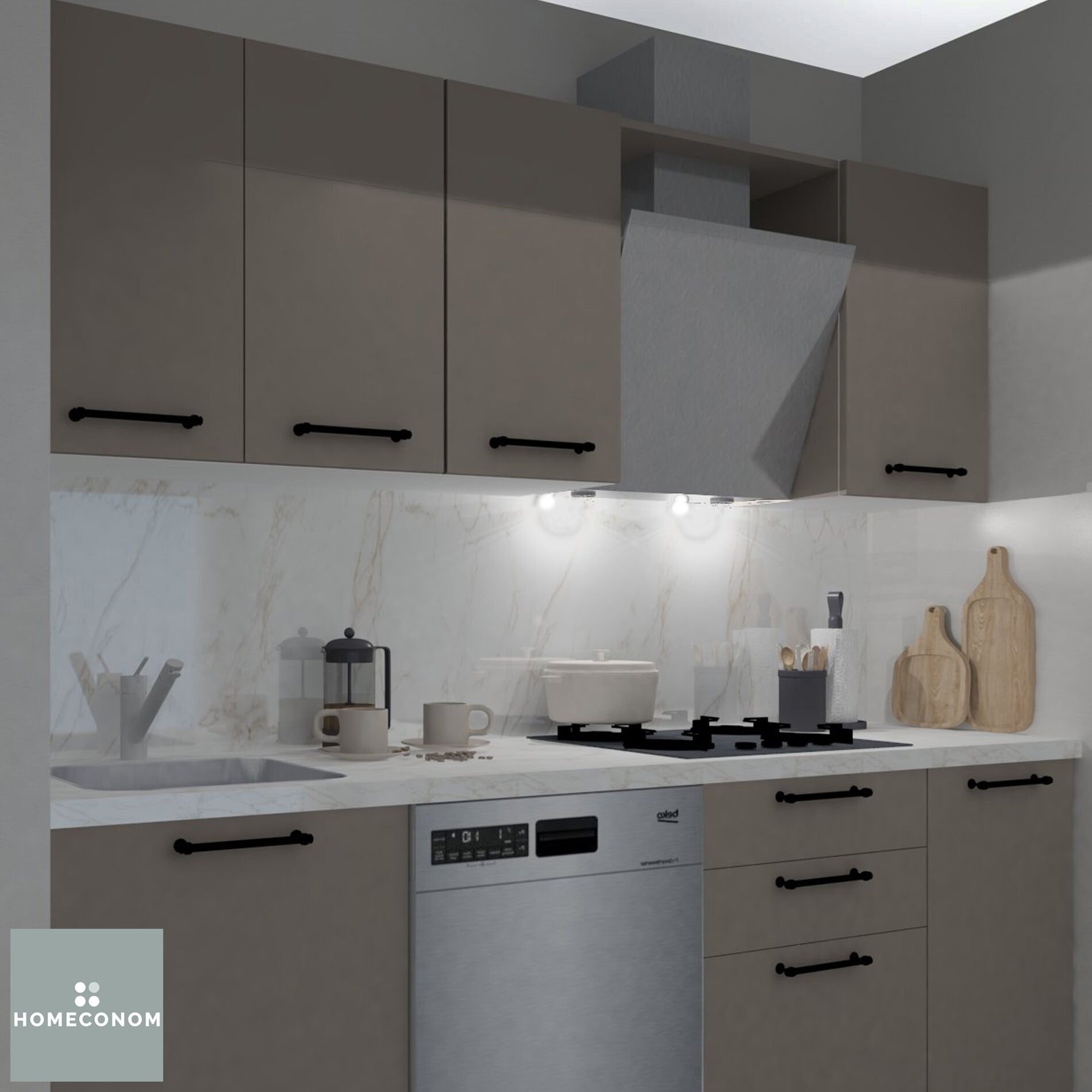 - Ürün görselinde bulunan; tezgah, duvar paneli / duvar seramiği, ankastre cihazlar, solo cihazlar, buzdolabı, evye ve armatür görsel amaçlı kullanılmış olup, içeriğe dahil değildir.