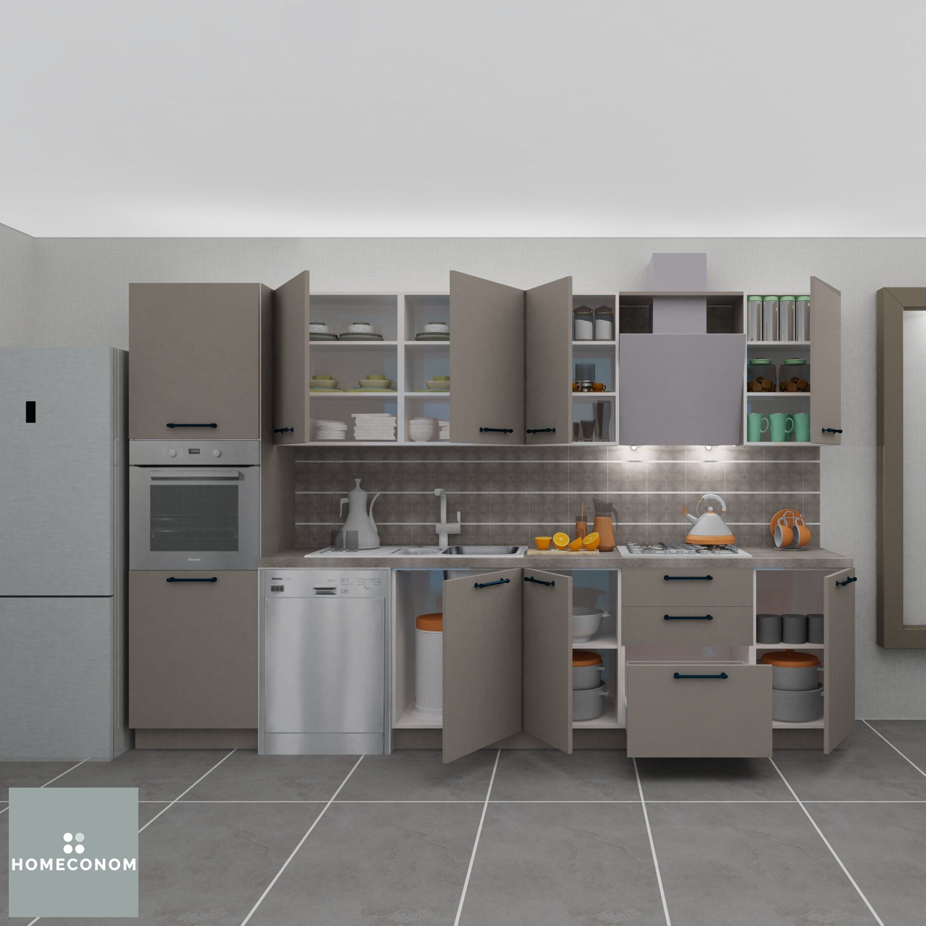 - Mutfak dolaplarımızda; alt dolaplarda 1 iç raf, üst dolaplarda 2 iç raf, fırı boy dolabında ise 2 iç raf bulunmaktadır.