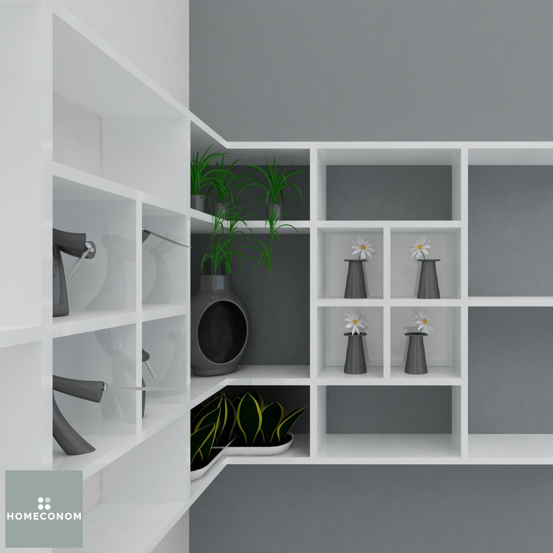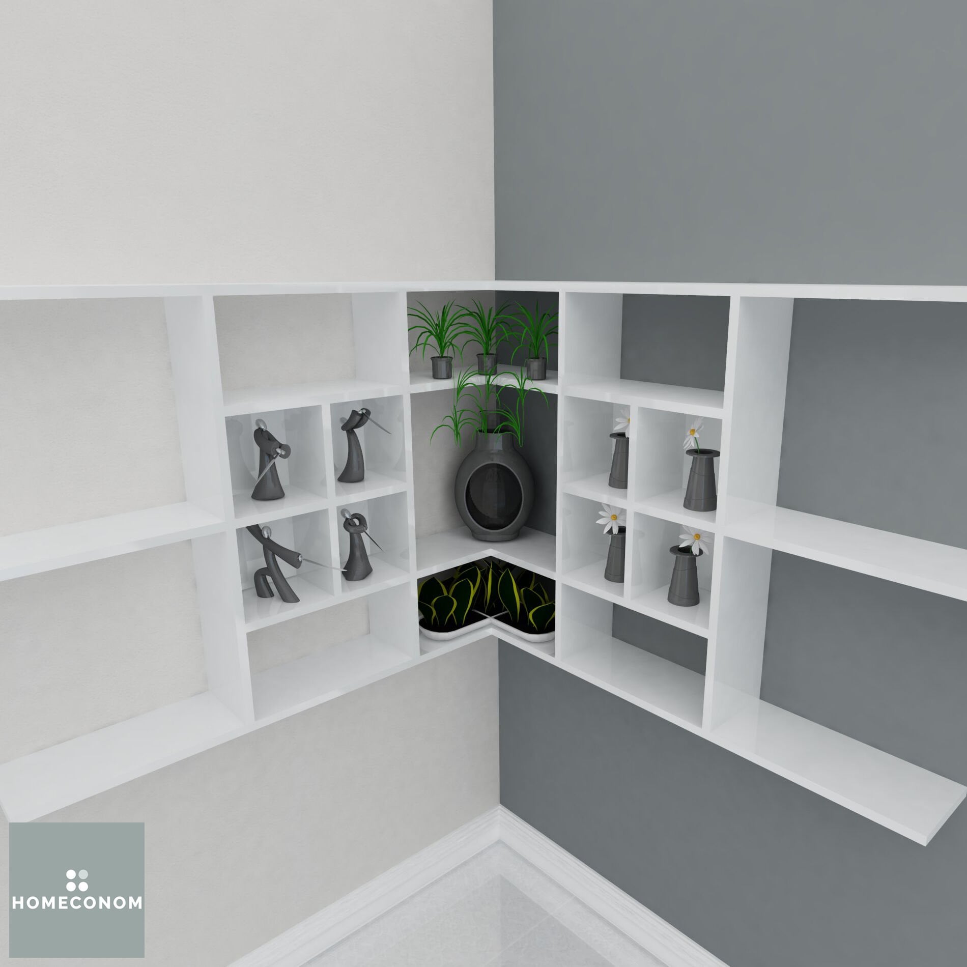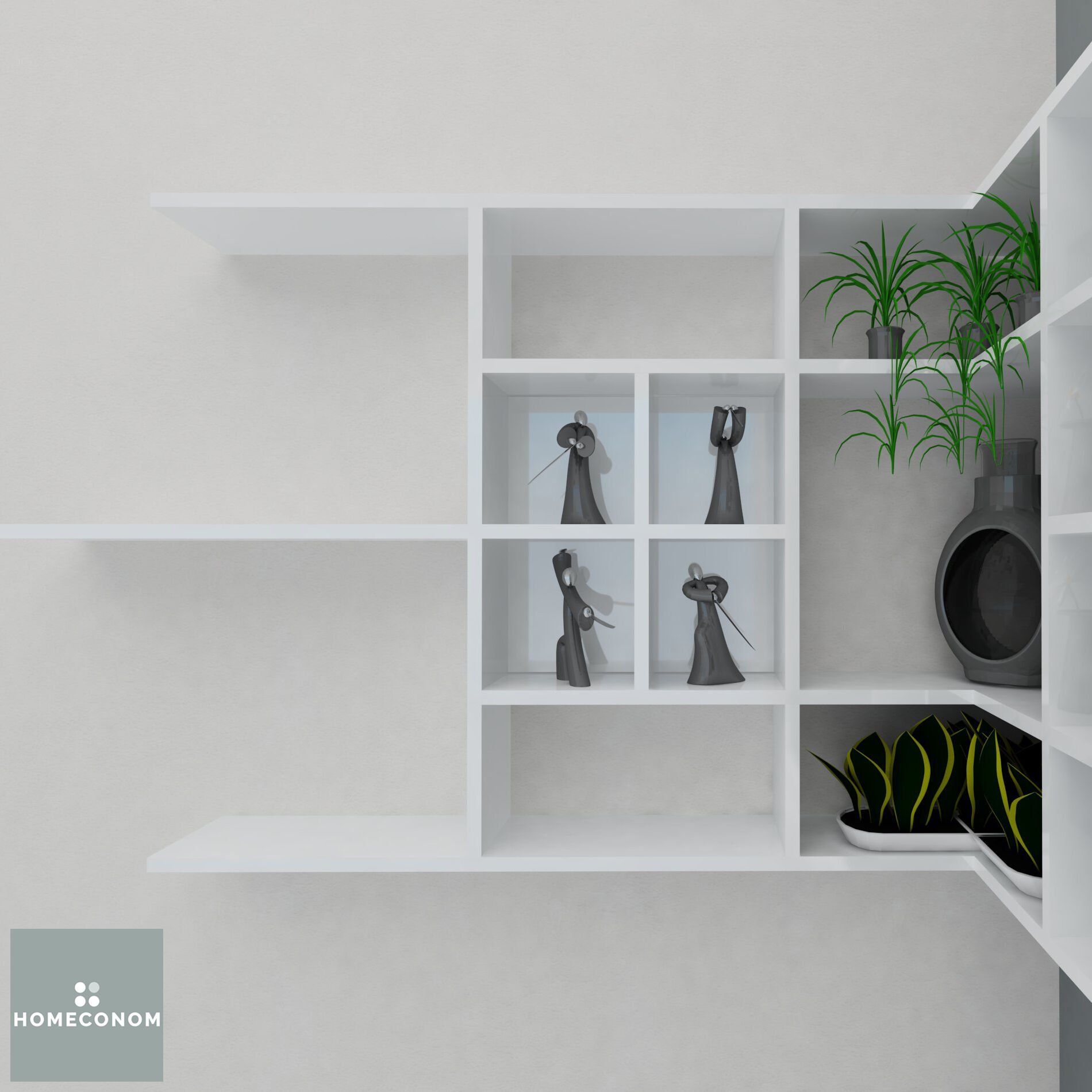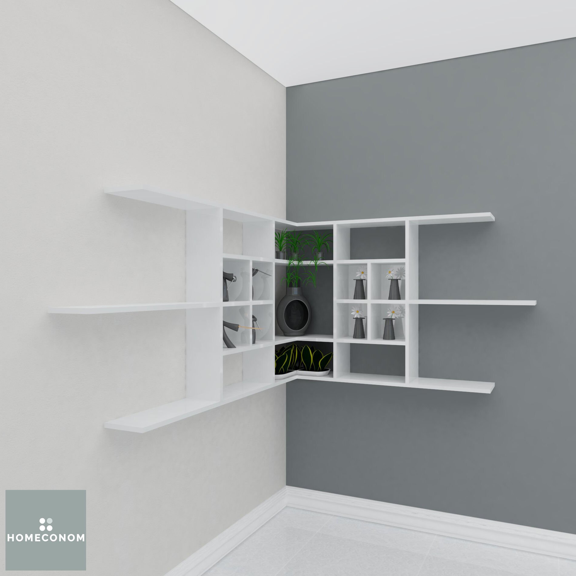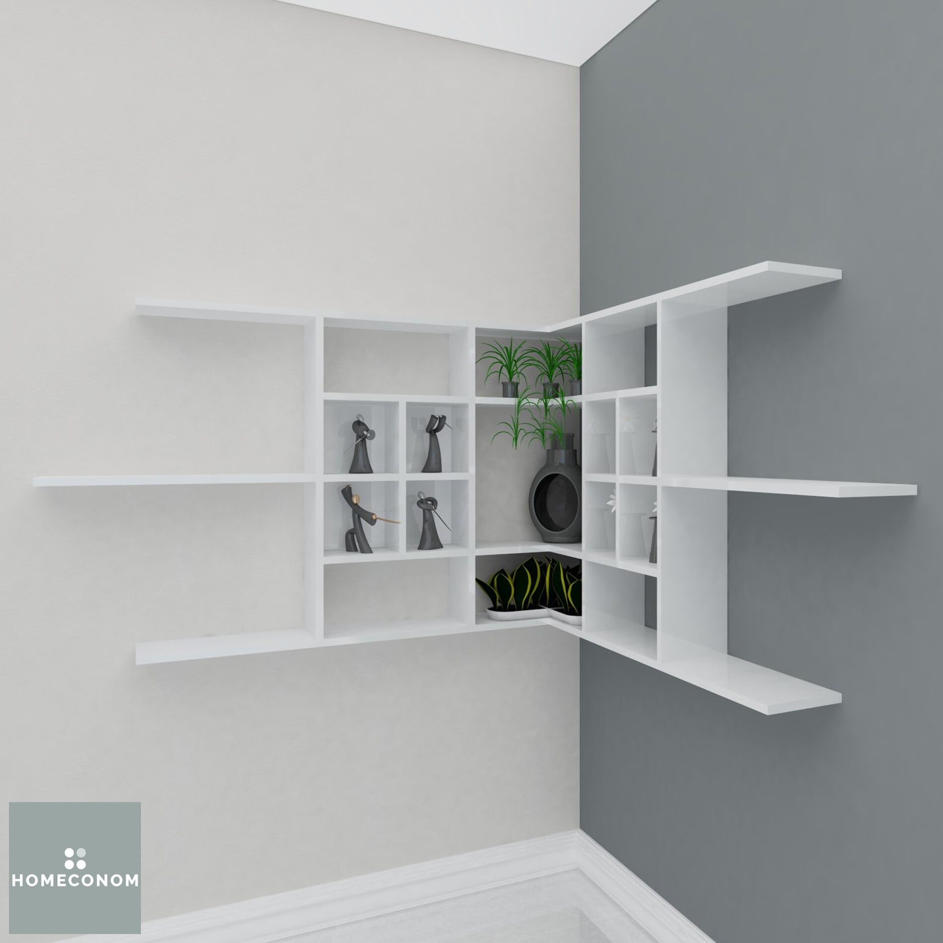 - LAGOMOOD CAVENER Parlak Beyaz Dekoratif Raf tüm HOMECONOM ürünleri ile kombin edilebilir.