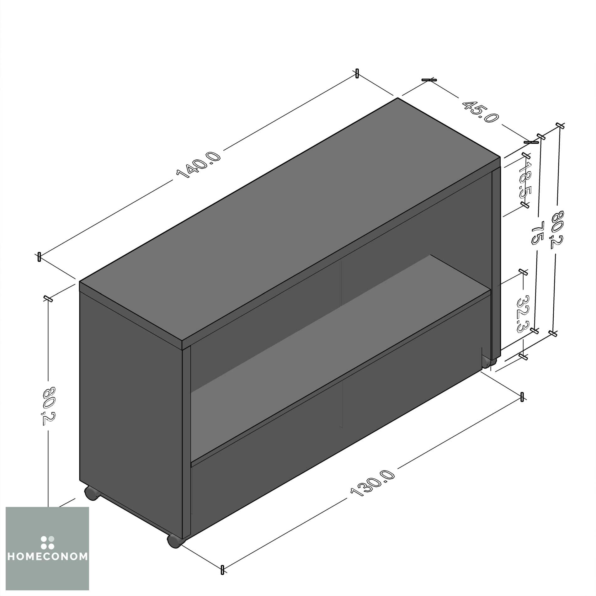 - Üstte bulunan çekmeceli etajer tekerlekli olup, masa olarak da kullanmaya imkan tanır. Altta bulunan konsol, üst etajere kombin ölçüdedir.