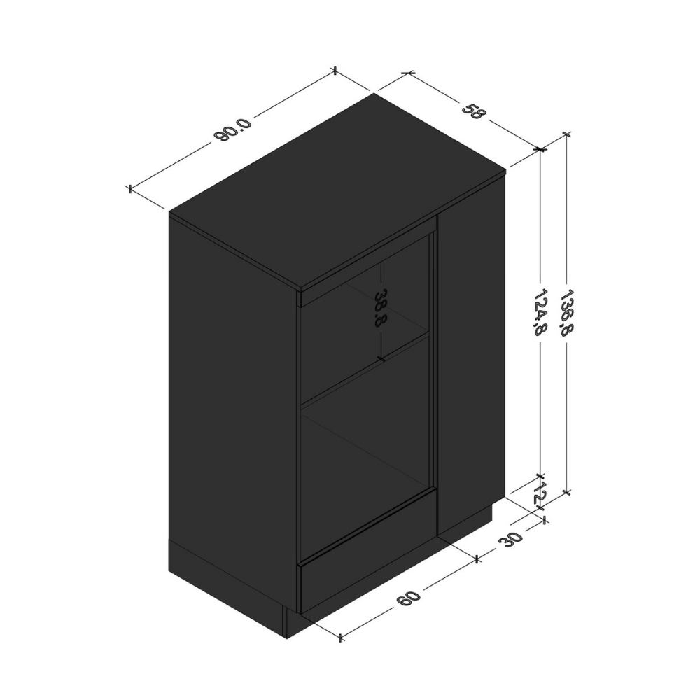 - Ürün; ergonomik olarak doğru organize edilmiş yüksekliği sayesinde, üst alanını küçük ev aletleri veya TV koymak için kullanmaya olanak sağlar.
