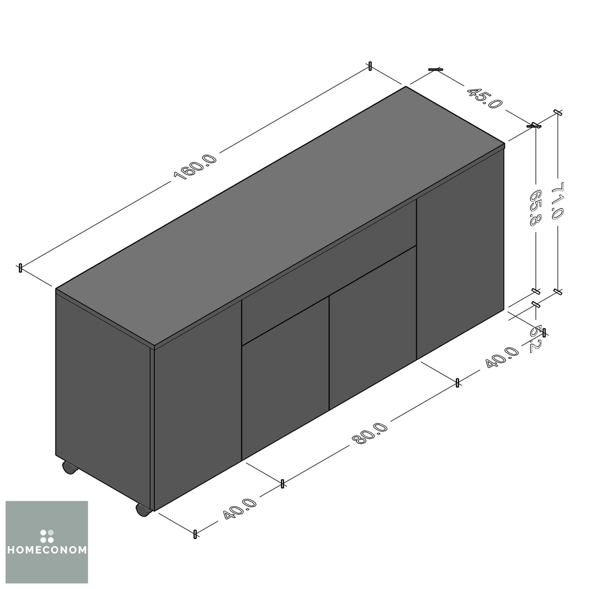- Dolabımızda; 1 iç raf bulunmaktadır ve alt kısmında tekerlek bulunmaktadır.