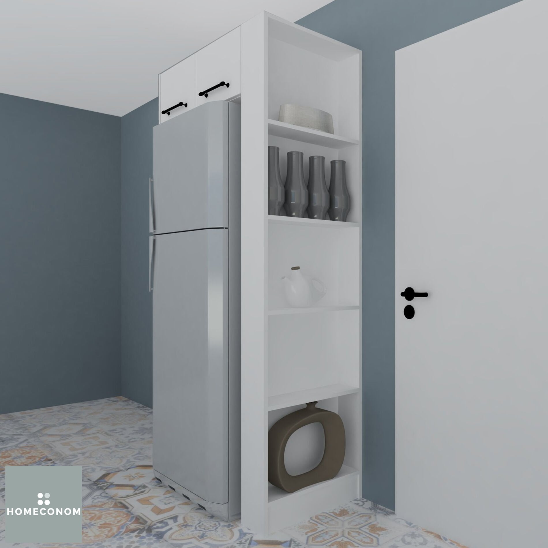 - NİŞLİ BUZDOLABI ÜNİTESİ 80 Parlak Beyaz tüm Parlak Beyaz Homeconom mutfakları ile kombine edilebilir.
