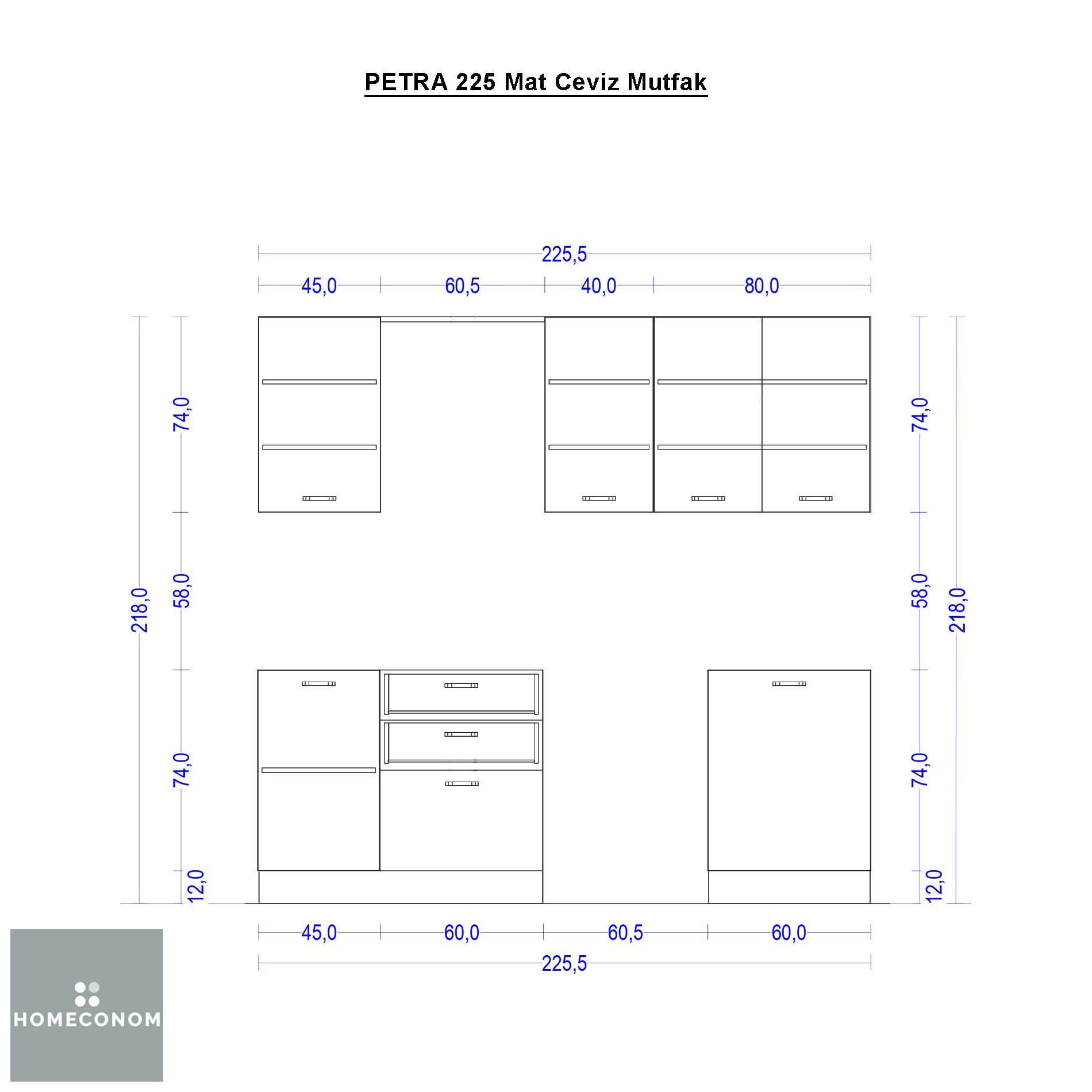 - PETRA 225 Mat Ceviz Mutfak dolabı, her dolap tekil olarak, özel paket sistemi ile paketlenerek sevkiyata hazırlanır.
