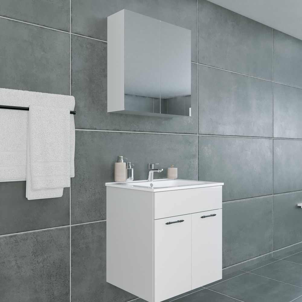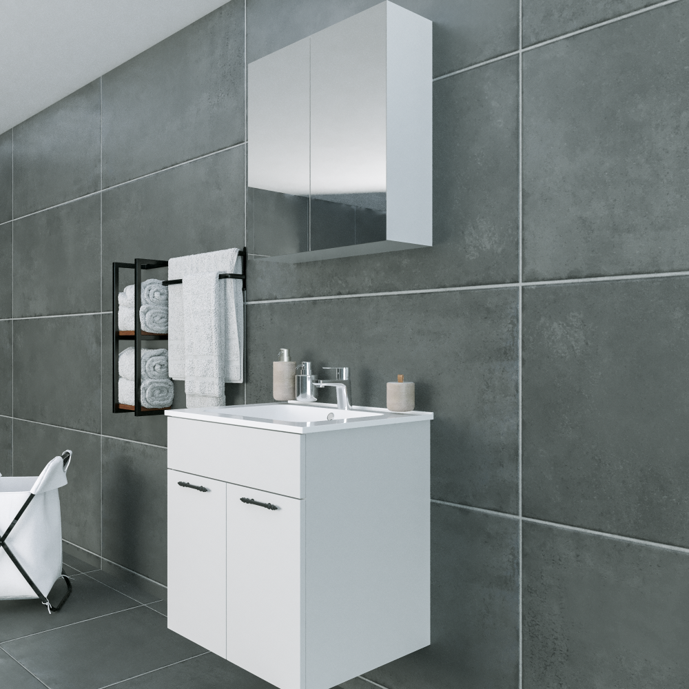 - REGNUM 65 cm Etajerli Lavabolu MDF Lam Parlak Beyaz Banyo Dolabı Takımı, tüm HOMECONOM ürünleri ile kombin edilebilir.