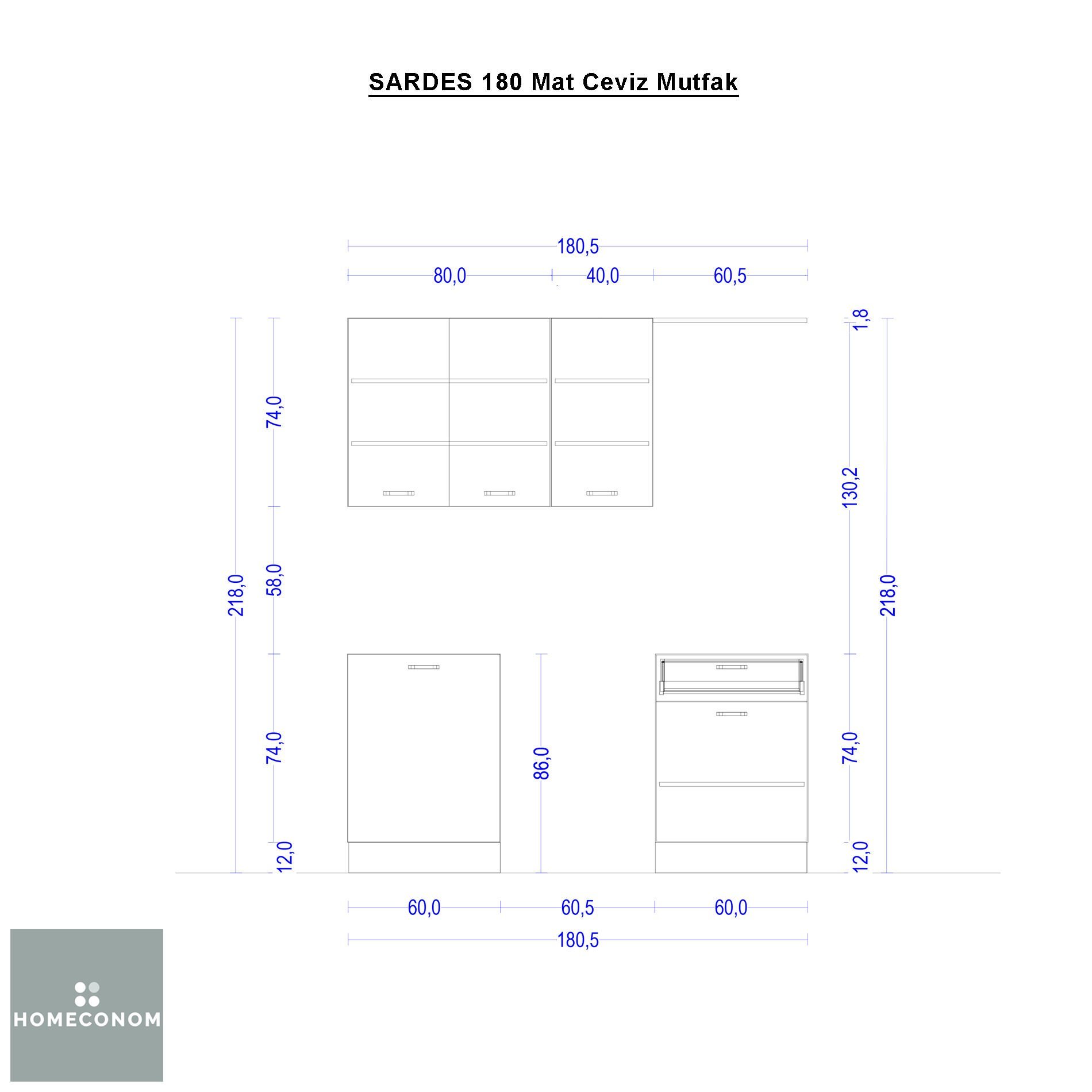 - SARDES 180 Mat Ceviz Mutfak dolaplarımız %100 MDFlam olarak üretilmektedir.