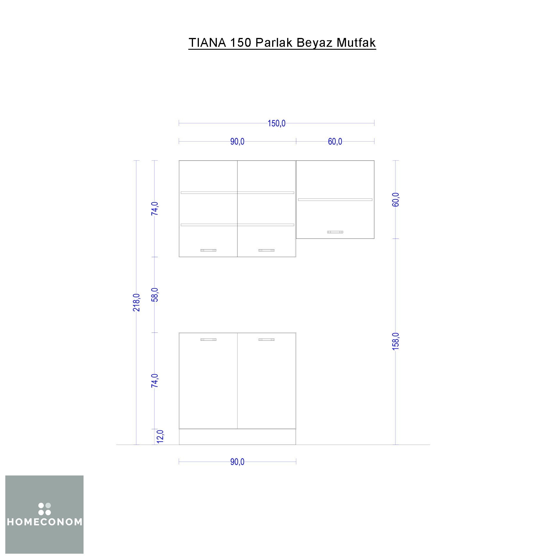 - TIANA 150 Parlak Beyaz Mutfak dolaplarımız %100 MDFlam olarak üretilmektedir.