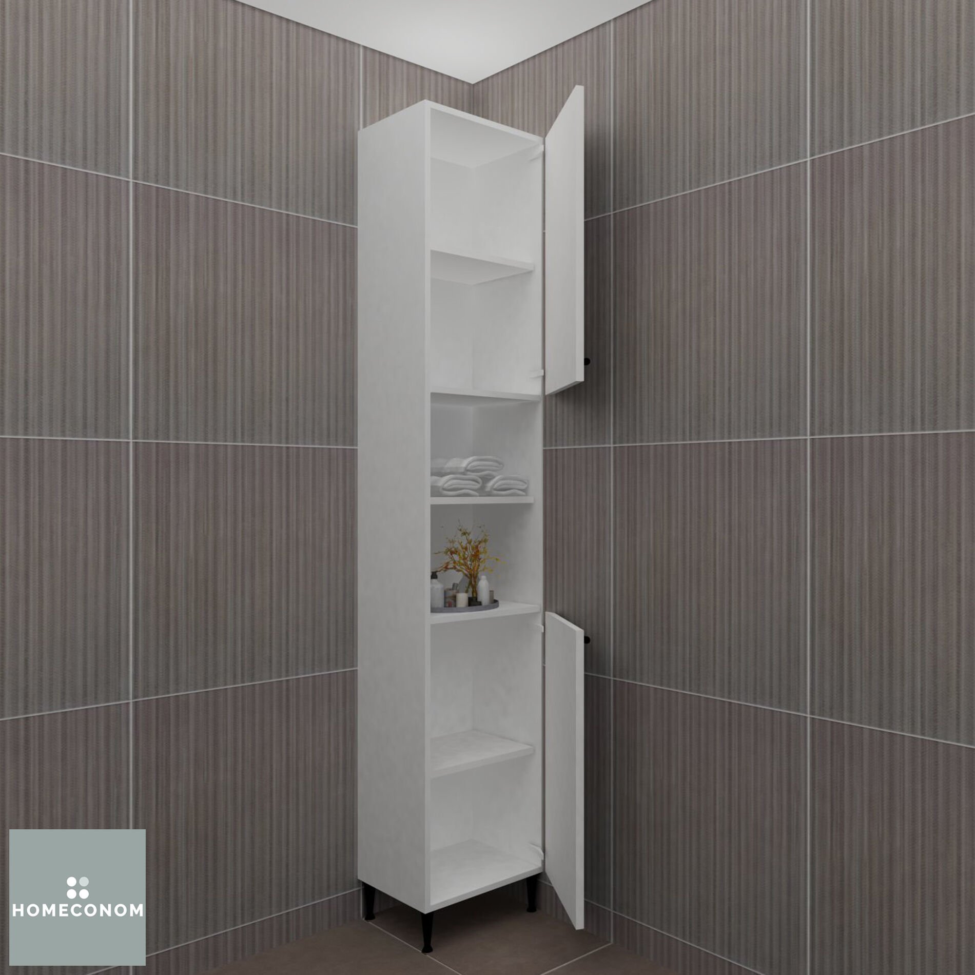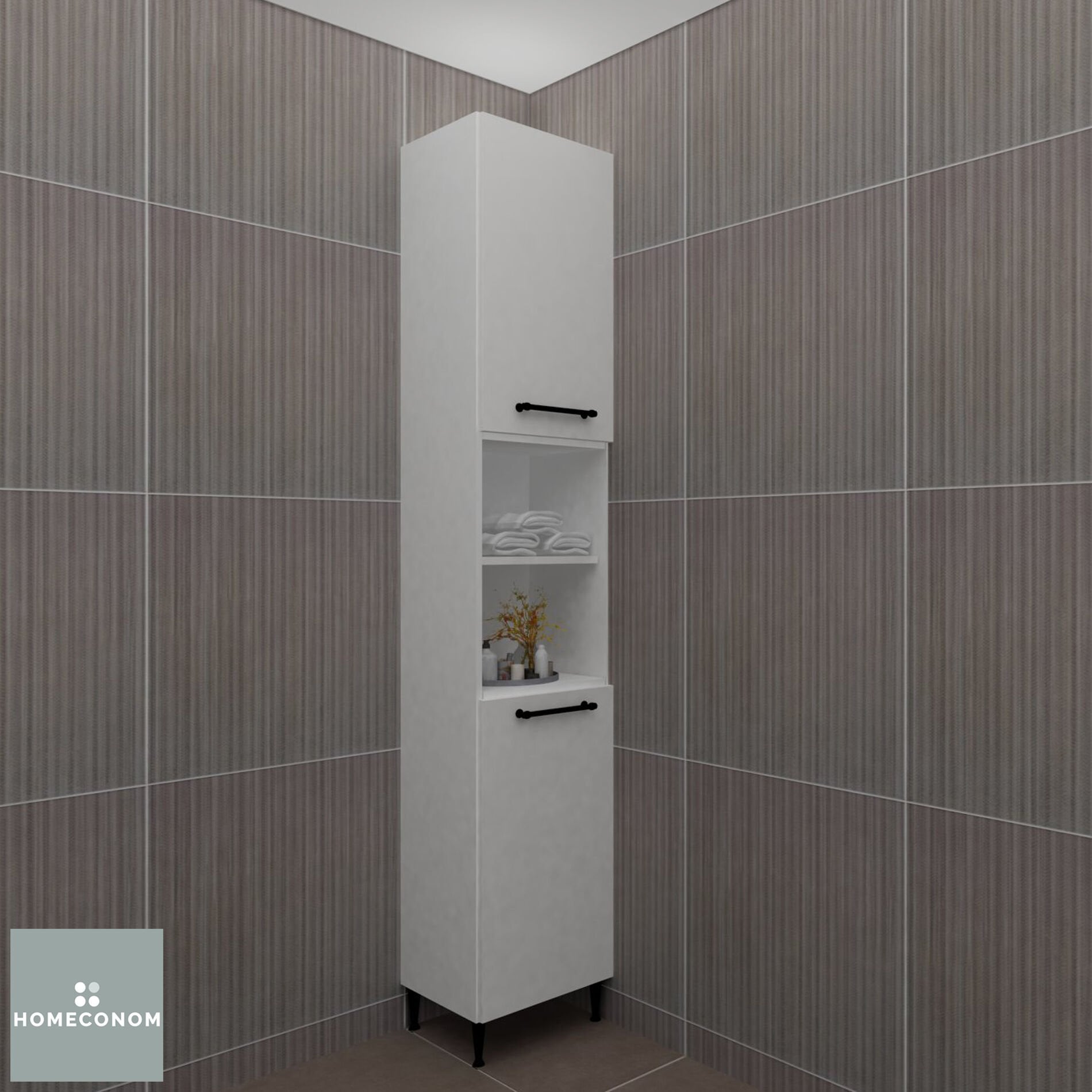 - TRIO 45 Parlak Beyaz Boy Dolap ile birlikte HOMECONOM Banyo Dolaplarından isteğiniz ürünü kombinleyebilirsiniz.