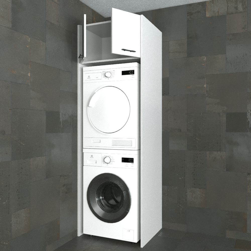 Ventre-M 70 cm Parlak Beyaz MDF Lam Çamaşır Ve Kurutma Makinesi Dolabı