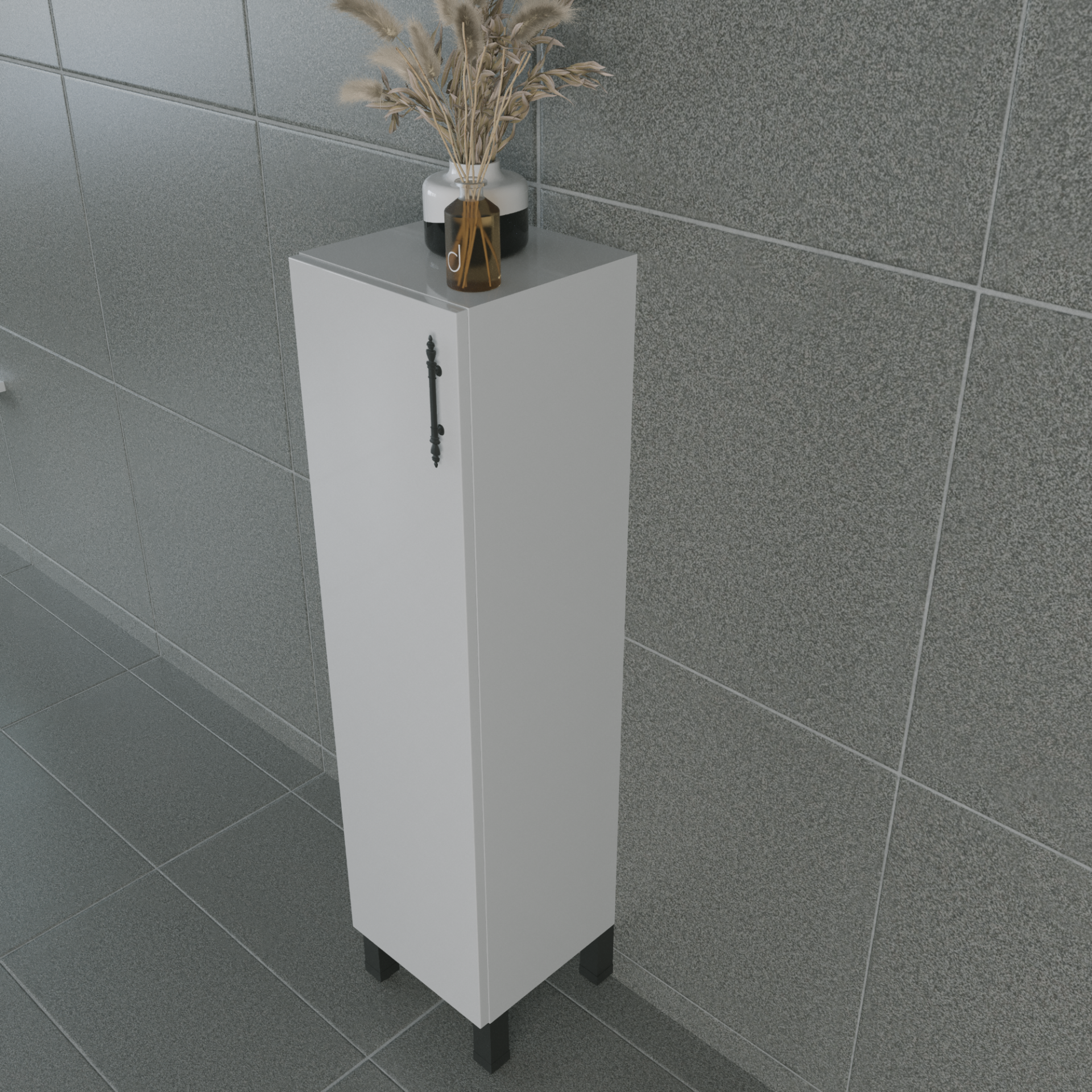 - VOLANS-AL 30 cm MDF Lam Parlak Beyaz Ayaklı Dolap, çok amaçlı kullanıma uygun şekilde tasarlanmış olup, banyoda, mutfakta, giriş holünde, ofiste yani kısaca ekstra depolama alanına ihtiyaç duyulan her yerde tercih edilebilir.